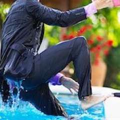 Kiminwetjeans was plunged into a dunk tank of water after the target was hit by geebee